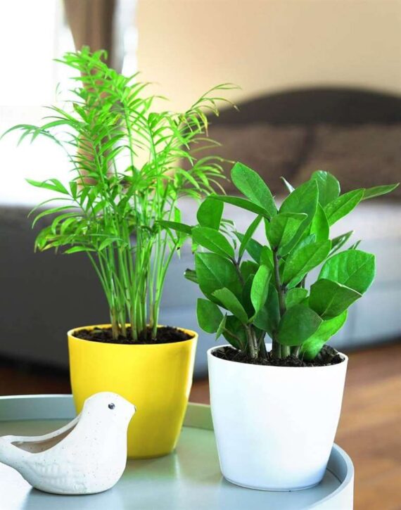 Blessed with lush foliages with varied shades of green, this combo is a gardening enthusiast’s dream. They are compact, yet striking houseplants complimented by their pop colour pots.