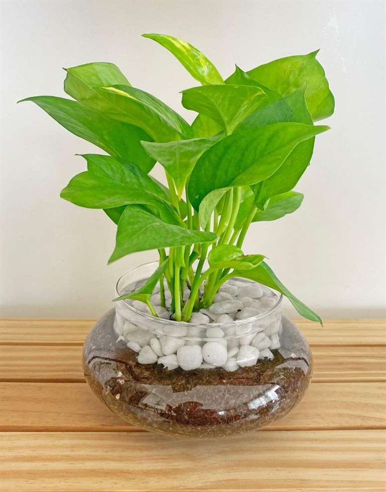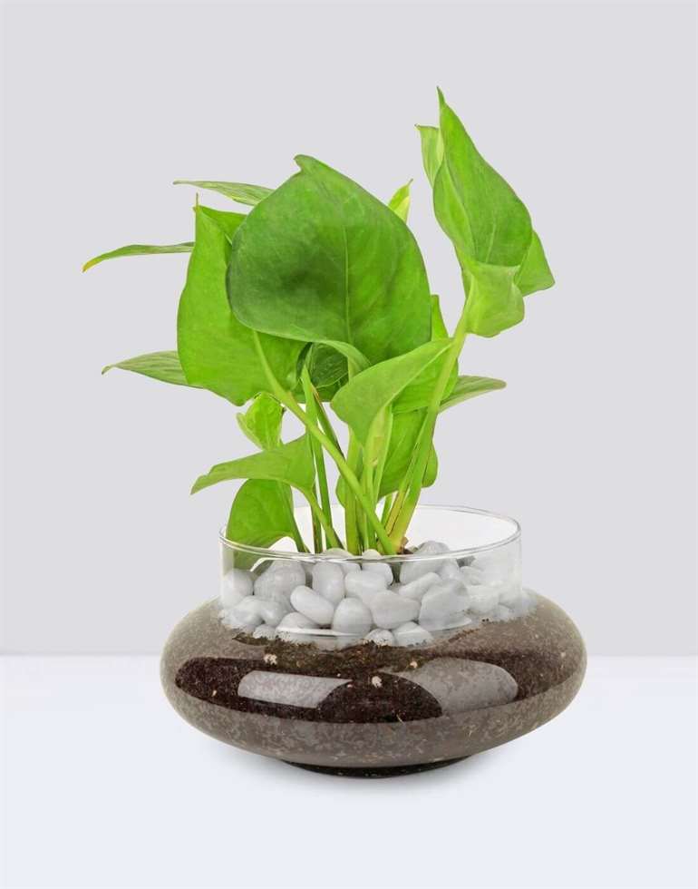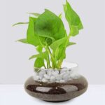 The money plant is an evergreen plant auspicious for bringing prosperity & good fortune to your home. The clear glass pot adds to this plant’s appeal by providing a unique look.