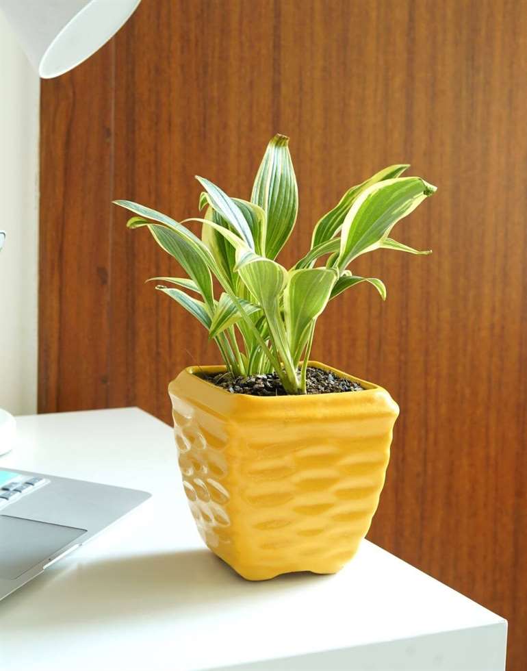 This hardy semi-succulent does not need too much attention. Give the Sansevieria lotus low light & keep the soil moist, & your plant happily grows in its little pot, with tall variegated leaves. The way the leaves grow out of the pot resembles a lotus, earning this Sansevieria its name.