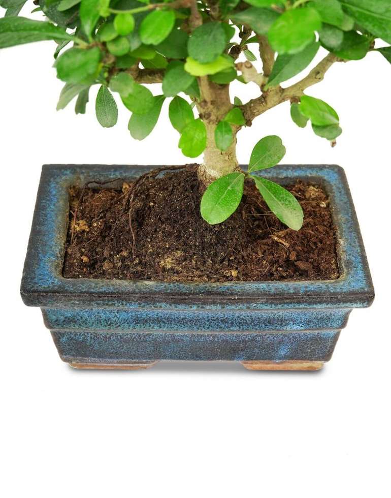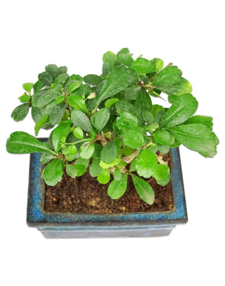 Bonsais are artificially stunted natural trees, creating a miniature appearance, with strong roots & stems. These double delight parallel I-shape Ficus bonsais are the perfect addition to your home.