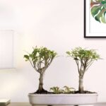Bonsais are artificially stunted natural trees, creating a miniature appearance, with strong roots & stems. These double delight parallel I-shape ficus bonsais are the perfect addition to your home.