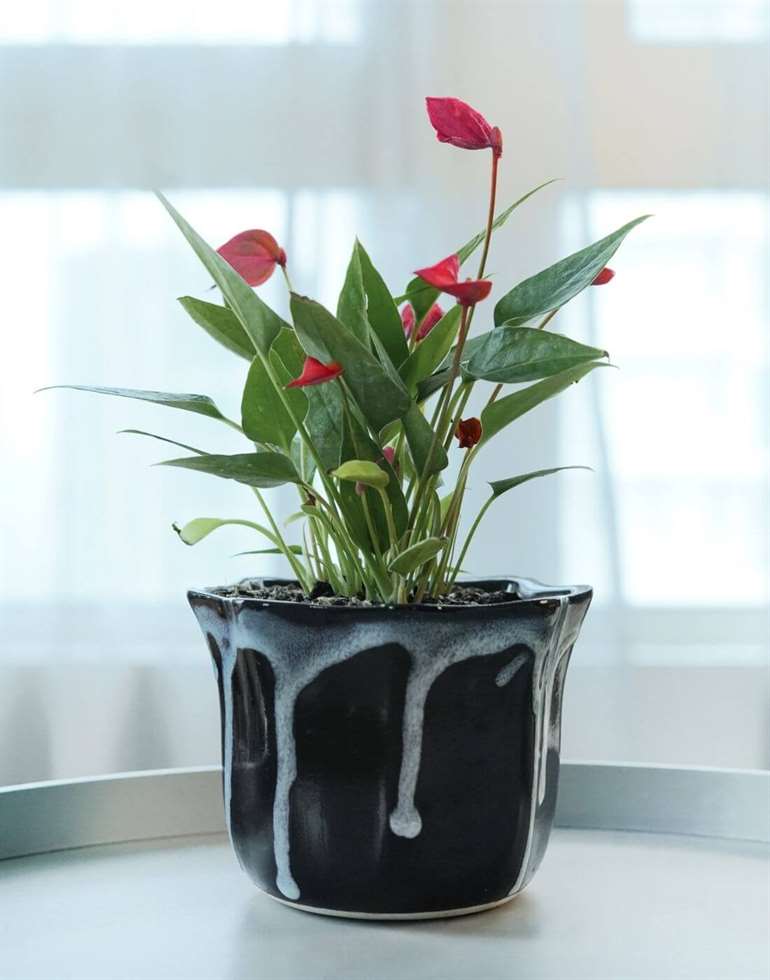 The mini flower Anthurium plant along with its unique black & white pot drastically enhances the look of any space it is placed in. There are very few indoor flowering plants, & this is certainly one of the best of the lot. It symbolises hospitality & positivity & makes for an excellent addition to your indoor garden or decor.