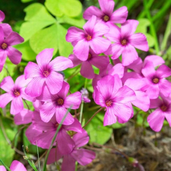 This pretty Oxalis (Wood Sorrel) is very beautiful for filling pockets in the rock garden. Tuberous wood sorrels provide food for certain small herbivores. The genus is incredibly diverse and collectible. These funny-looking bulbs will produce foliage and flowers in just 8-10 weeks. Some varieties have double flower Leaves are in a range of shades and delicate flowers bloom off and on during fall, winter and spring. Leaves of few varieties are clover shaped and some think the plant brings good luck. These leaves fold up at night and open when light returns.