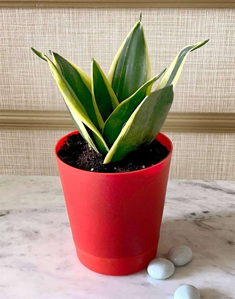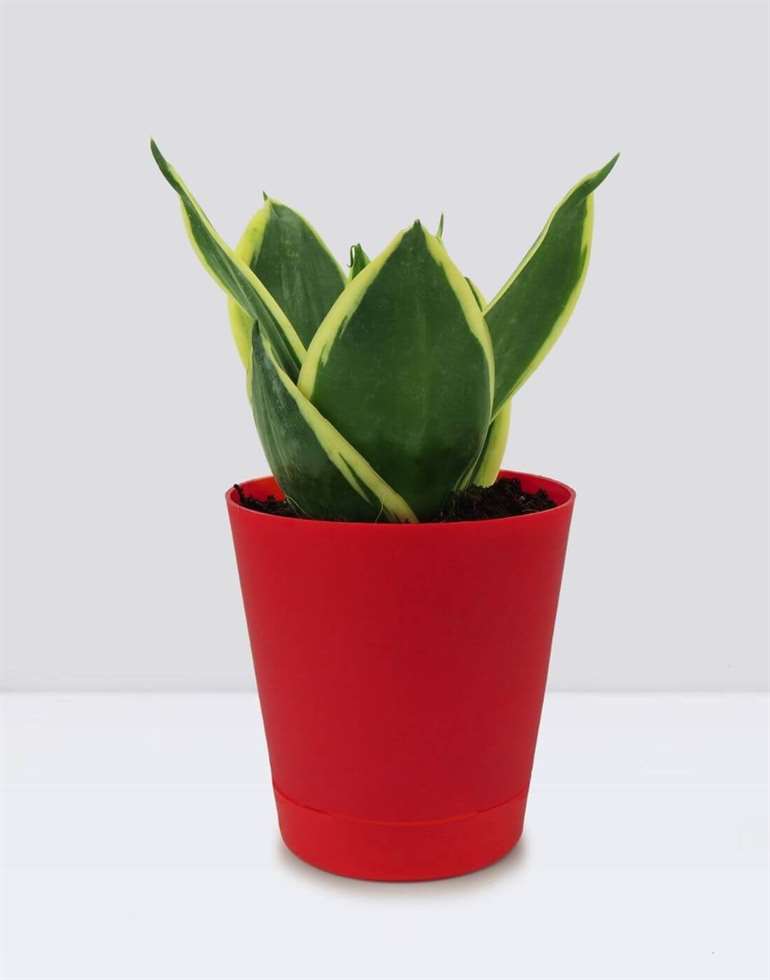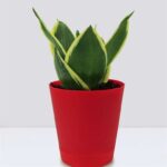 This hardy semi-succulent does not need too much attention. Give the Sansevieria lotus low light & keep the soil moist, & your plant happily grows in its little pot, with tall variegated leaves. The way the leaves grow out of the pot resembles a lotus, earning this Sansevieria its name.