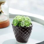 This hardy semi-succulent does not need too much attention. Give the Sansevieria lotus low light & keep the soil moist, & your plant happily grows in its little pot, with tall variegated leaves. The way the leaves grow out of the pot resembles a lotus, earning this Sansevieria its name.