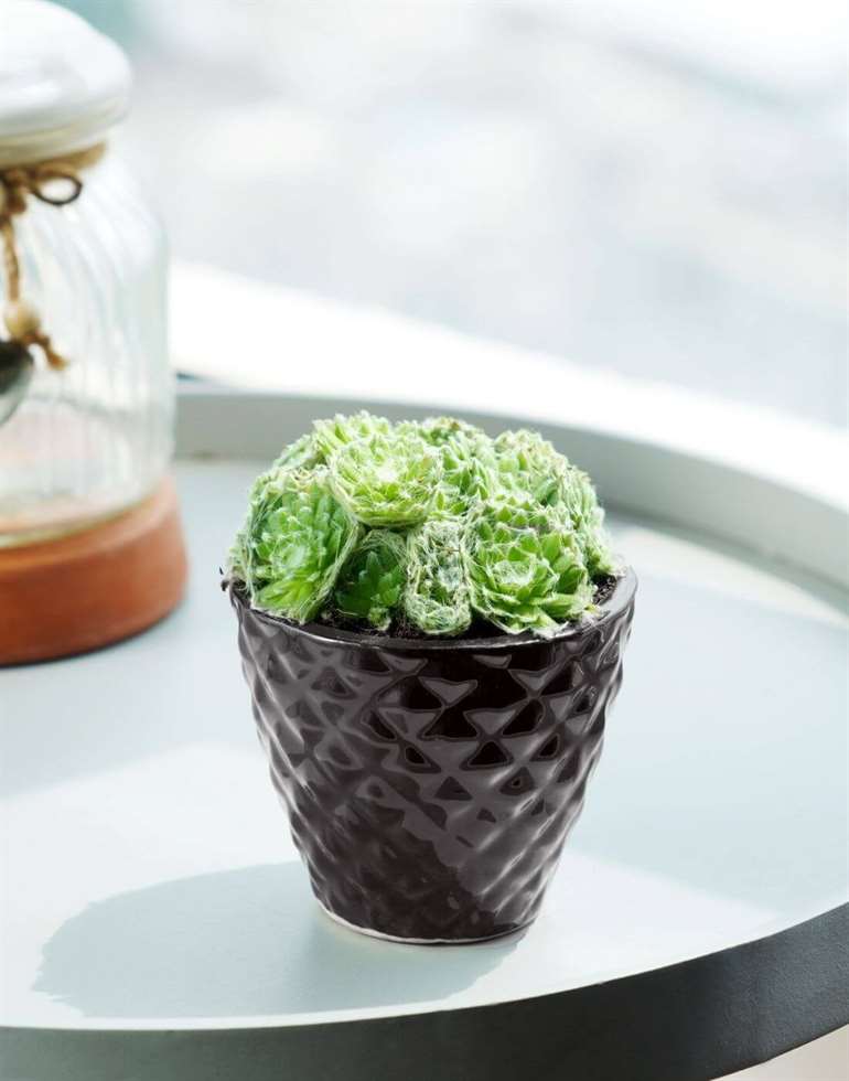 Sempervivum Green Wheel is a stunning evergreen succulent. It has multiple layers of thick, fleshy, & pointy leaves. & forms a foundation of close knit rosettes, giving it an elegant look. These are very suitable for table-tops.