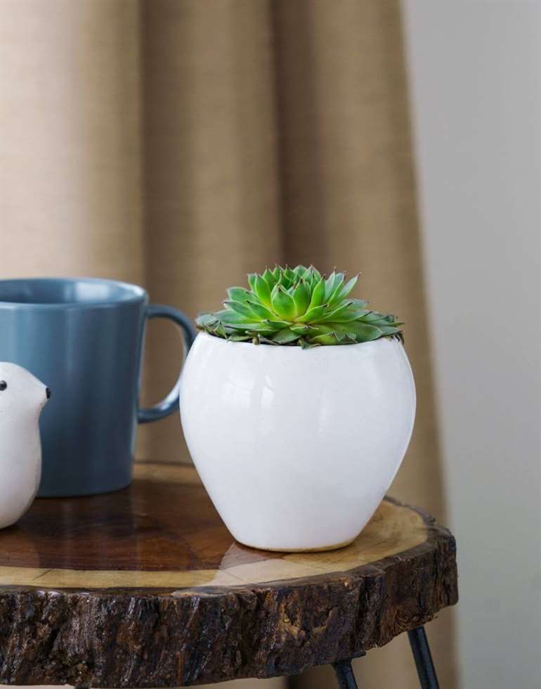 This attractive succulent is a brownish-red rosette with a green centre. Being low maintenance & resilient, the Echeveria Melaco is a favourite of beginners everywhere, especially considering its aesthetic appeal. The plant in combination with its pot makes for a subtle yet striking appearance.